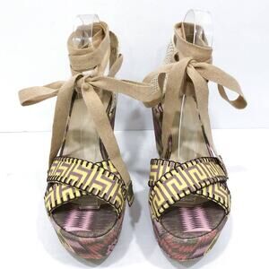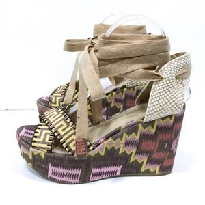 Theodora & Callum by Stuart Weitzman Biarritz Tribal Boho Lace Up Wedge Sandals