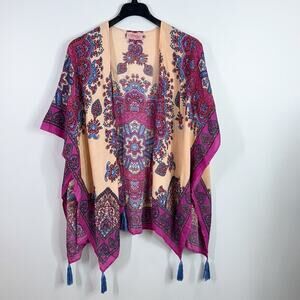Theodora & Callum open front printed tassel Ruana kimono one size