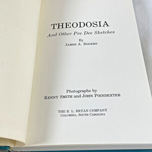 Theodosia And Other Pee Dee Sketches By James A Rogers. Published 1978 by RL Bryan Co in South Carolina. Blue hard cover with dust jacket. Signed by author in May 1978 with a personal note on inside of cover. Pre-owned condition. Cover has some corner/edge wear, but very minimal. Dust jacket has worn edges and a small tear at the top. Signed note by author is personalized. Pages are clean and I saw no tears or folds. Review photos carefully for all details.