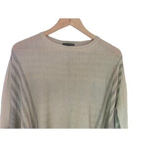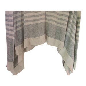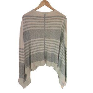 Theonne Silk Wool Blend Oversized Gray Cream Striped Shark Bite Hem Sweater M
