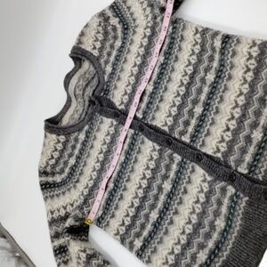 Theoria Nordic print buttondown cardigan sweater smaller large gray/green