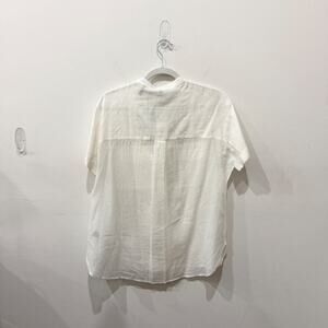 Theory 100% Cotton Short Sleeve Semi Sheer Button-Up Shirt Top White Women's S