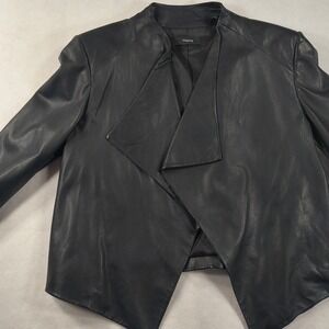Theory 100% Sheep Leather Jacket Draped Open Front Zip Sleeve Moto Blazer Chic