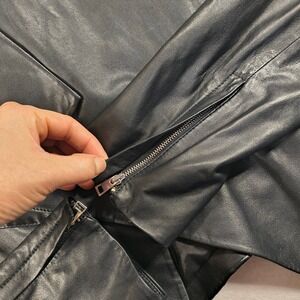 Keywords: Theory, Leather Jacket, Black Jacket, Womens Jacket, Crossover Jacket, Zip Detail, Modern Jacket, Edgy Fashion, Contemporary Style, Size L, Designer Jacket, Outerwear, Fashion Jacket, Professional Leather