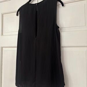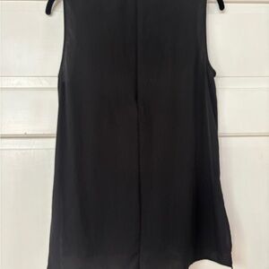 Elegant black sleeveless blouse. Features a flowy design. Perfect for versatile styling. Has beautiful seam lines and one straight down the back (continuous from zipper closure). 100% silk no flaws.