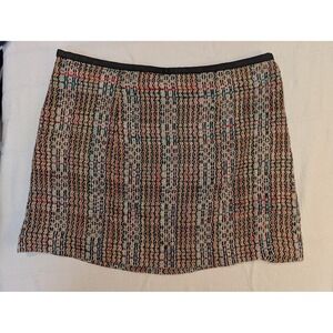 Keywords: Theory skirt, tweed mini skirt, multicolor skirt, leather waistband skirt, size 4 skirt, womens skirt, designer skirt, party skirt, casual skirt, silk blend skirt, black waistband, colorful tweed, mini skirt, work skirt, going out skirt