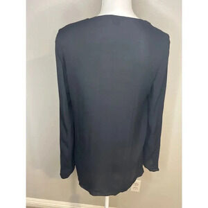 Theory 100% silk v neck semi sheer long sleeve blouse women's size S
