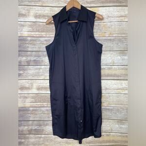Theory 12 Walva sleeveless button front shirt dress in black. This is in great condition. It definitely fits true to size. However, I would say it’s better for a smaller bust than a size D.