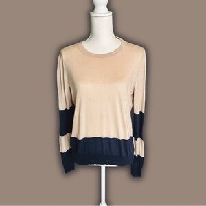 Theory ‘Abino Jam’ Crewneck Sweater in “Nude / Navy” Size Large