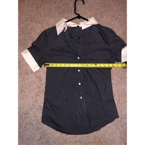 Theory Adele C Chopstick Black White Stripe Polo Cotton Blouse, Size Medium