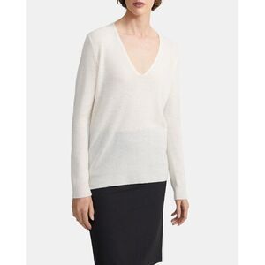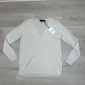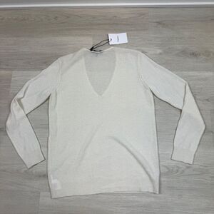 Theory Adrianna 100% Cashmere V Neck Long Sleeve Sweater Womens Medium Ivory