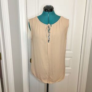 Theory Alamay Silk Lightweight Sheer Unlined Sleeveless Gathered Tie Neck Keyhole Blouse