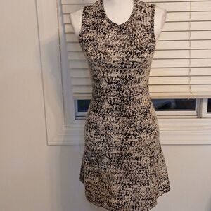 This chic sleeveless dress features a sophisticated black and white pattern, perfect for any occasion. Its elegant design offers a flattering fit, making it a versatile addition to your wardrobe.