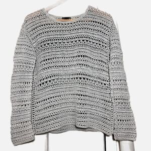 Theory Amena Arabis Tint Chunky Open Knit Crochet Pullover Sweater Womens Medium