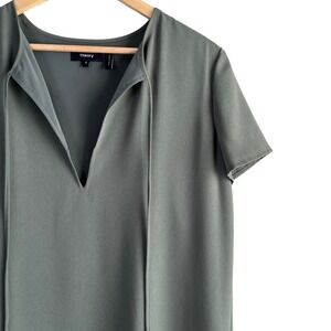 Theory Antazie Tie Front Shift Mini Dress Drapey Crepe in Military Green, Size 8