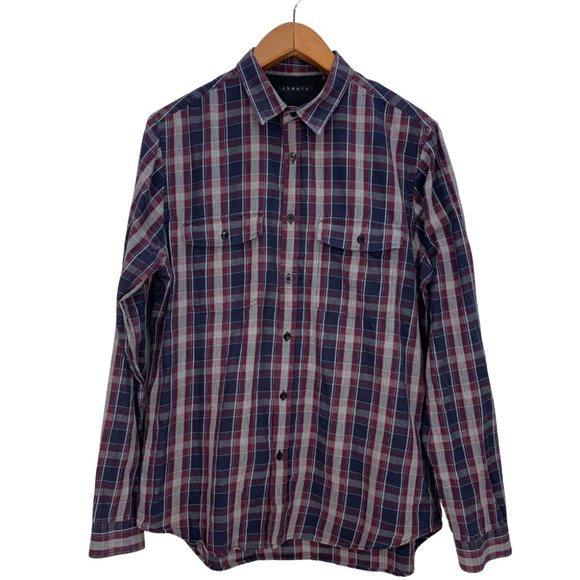 Theory Aumont Kentin Casual Button Down Shirt Paid Preppy Blue Red Large