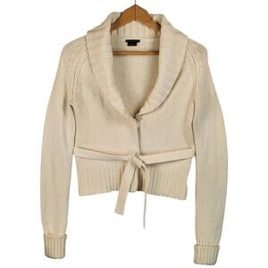 Theory BIAB Cardigan Cropped Sweater Women’s SZ S Cream Cashmere/Wool Blend Belt