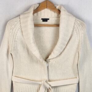 Theory BIAB Cardigan Sweater Women S Cream Cashmere Blend Belted Open Knit in Pre-owned - Excellent condition, free from any significant flaws or stains. Major issues will be highlighted in photos.