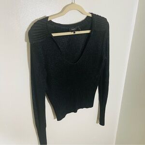 Theory Back Collar Roving Viscose Cropped Sweater Black Knit Beach Casual