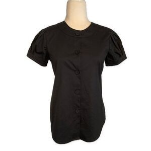 Theory Barney’s Coop Solid Black Button Down Puff Short Sleeve Top Small