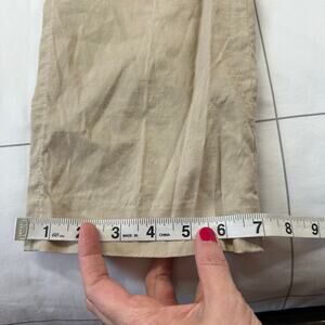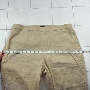 Theory Basic Pull On Pants Womens 12 Khaki Organic Crunch Wash Linen Crop Ankle