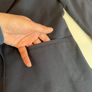 Theory 'Bastian Malaya' navy double breasted blazer drapey, size 6.