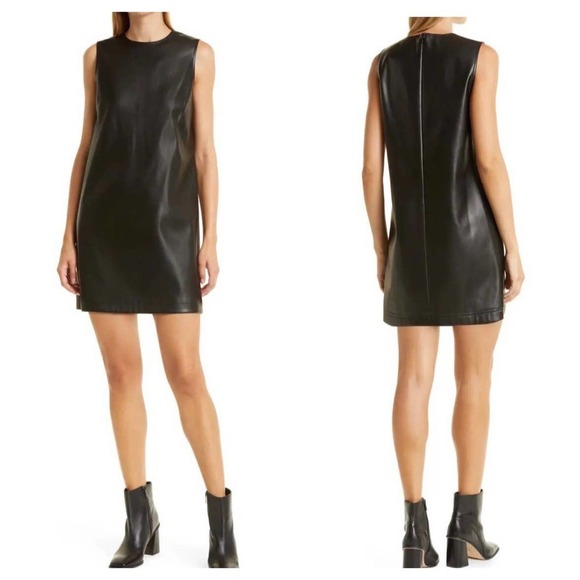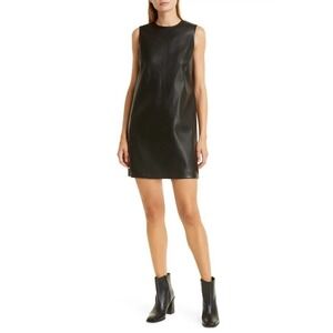 Theory Bedford Mod Vegan Leather Sleeveless Shift Dress Black Women's Size 4