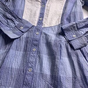 Theory Bibbed Casual Blue Long Sleeve Shirt Dress tunic Sz 10