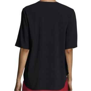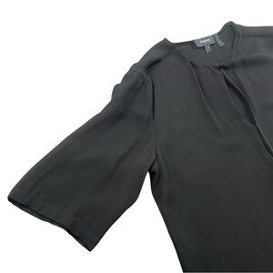Theory Black Antazie Silk Keyhole Neck Crew Neck Short Sleeve Top In Size P
