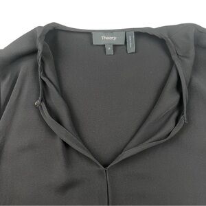 Theory Black Antazie Silk Keyhole Neck Crew Neck Short Sleeve Top In Size P