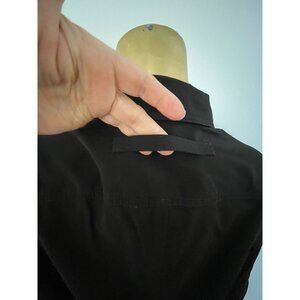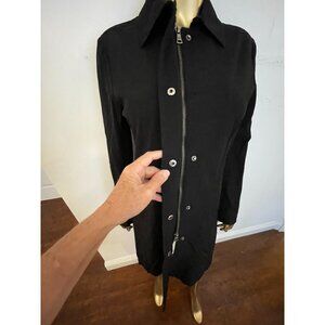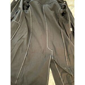 Theory Black Button zip Long Womens Trench Coat Academia Preppy Classic Split M