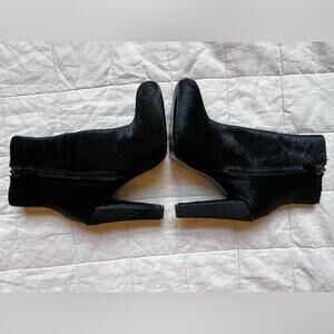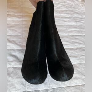 Theory Black Calf Hair Debra 4" Heeled Ankle Booties Witchy Wicked Elphaba- 37 1/2