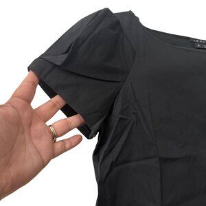 Theory Black Career Minimal Cotton Short Puff Sleeve Blouse Womens Small