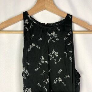 Theory Black Floral Perfect Tie Top Silk Tank Top