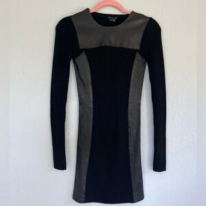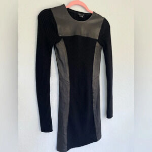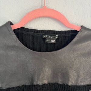 Theory Black 100% Lambskin Leather Trim Long Sleeve Stretch Sweater Dress Size P/TP. Fits Size 0/XS