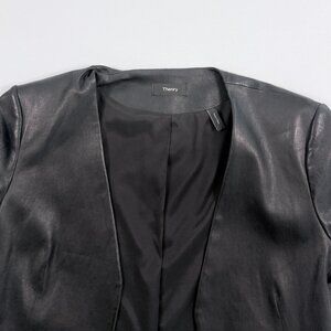 Theory Black Leather 3/4 Sleeve Lindrayia Blazer