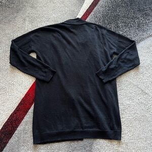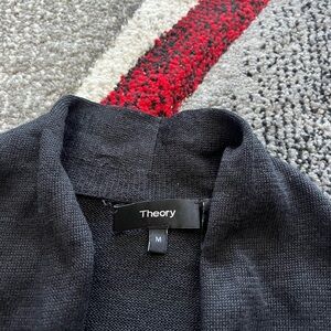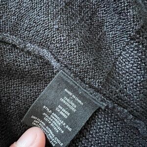 Theory Black Linen Blend Fishnet Knit Open Front Cardigan