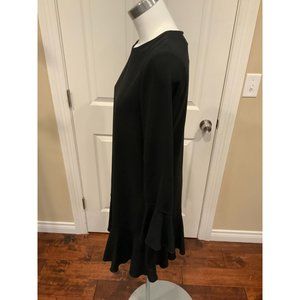 Theory Black Long Flare Sleeves Mini Shift Dress, Size 6