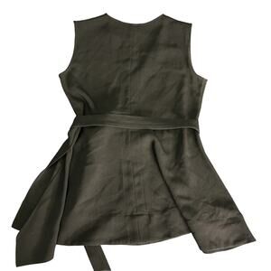 This belted mini dress has a hook and eye neckline, side slits, round neck and is sleeveless. Available in their size P+ - pay attention to the measurements.