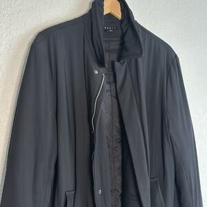 Theory Black Nylon Puffer Coat Men’s XL Snap Front Gorpcore Heavy Warm Stretch