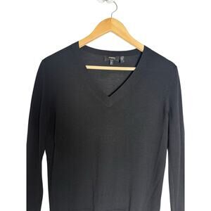 Theory Black Regal Wool V-Neck Long Sleeve Pullover Sweater Size Small
