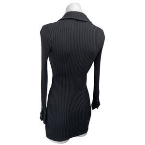 Theory Black Ribbed Knit Long Sleeve Collared Button Up Mini Bodycon Dress XS
