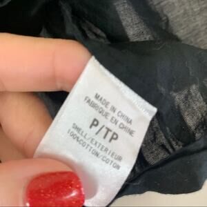 Size P fits like a SP. 100% Cotton. Length 24 inches. Armpit to armpit 17 1/2 inches. Sleeve length 22 inches. 3/4 quarter sleeves. Great condition!