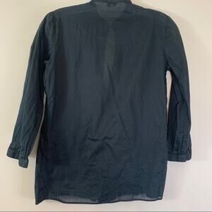 Theory Black Sheer Pintuck Keyhole Long Sleeve Blouse