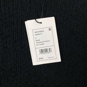 Theory Black Shrunken Fit Crewneck Sweater Feathered Cotton Linen