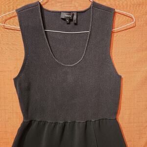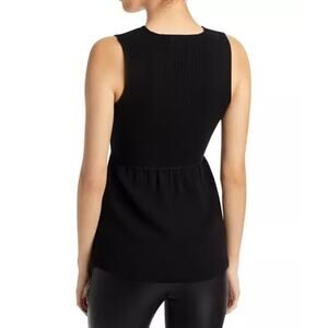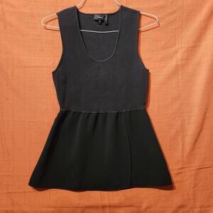 Theory Black Sz M Knit Combination Sleeveless Peplum Blouse Office Dressy Casual