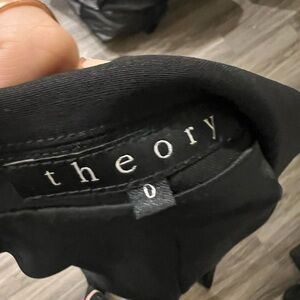 This Theory blazer in classic black offers a sophisticated and tailored silhouette, perfect for formal occasions. Its notched lapels and single-breasted design add a touch of timeless elegance. The subtle texture of the fabric enhances its refined appearance, making it a versatile addition to any wardrobe.