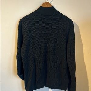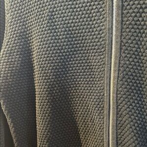 Stylish black sweater with a textured design. Features a full zip front. Perfect for casual wear.