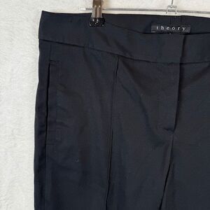 Theory Black Trousers Straight Leg Zipper Cuff Front Seam Stretch Size 8