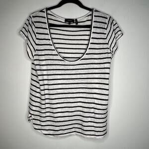 Theory Black & White Stripe Linen Scoop Neck T-Shirt Size Large